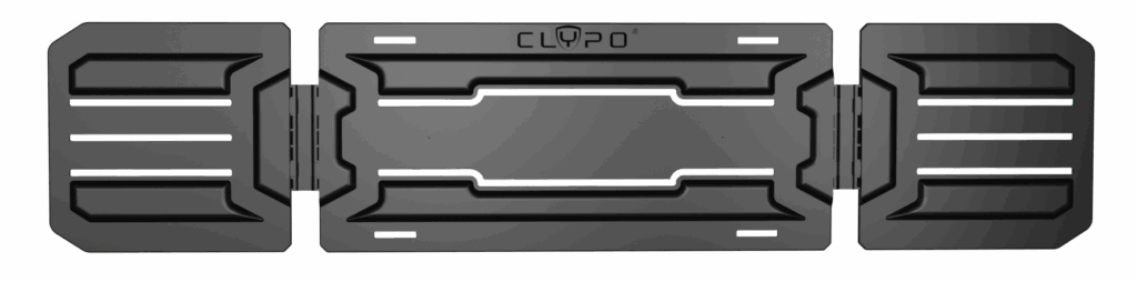 Assure une stabilité optimale et un point d’ancrage solide pour les sangles. Sa rigidité permet au CLYPO® de s’adapter à tous les pare-chocs sans se déformer. Léger (1,9 kg), il se manipule facilement d’une main et se range sans effort, même sous des sacs, sans risque d’endommagement.